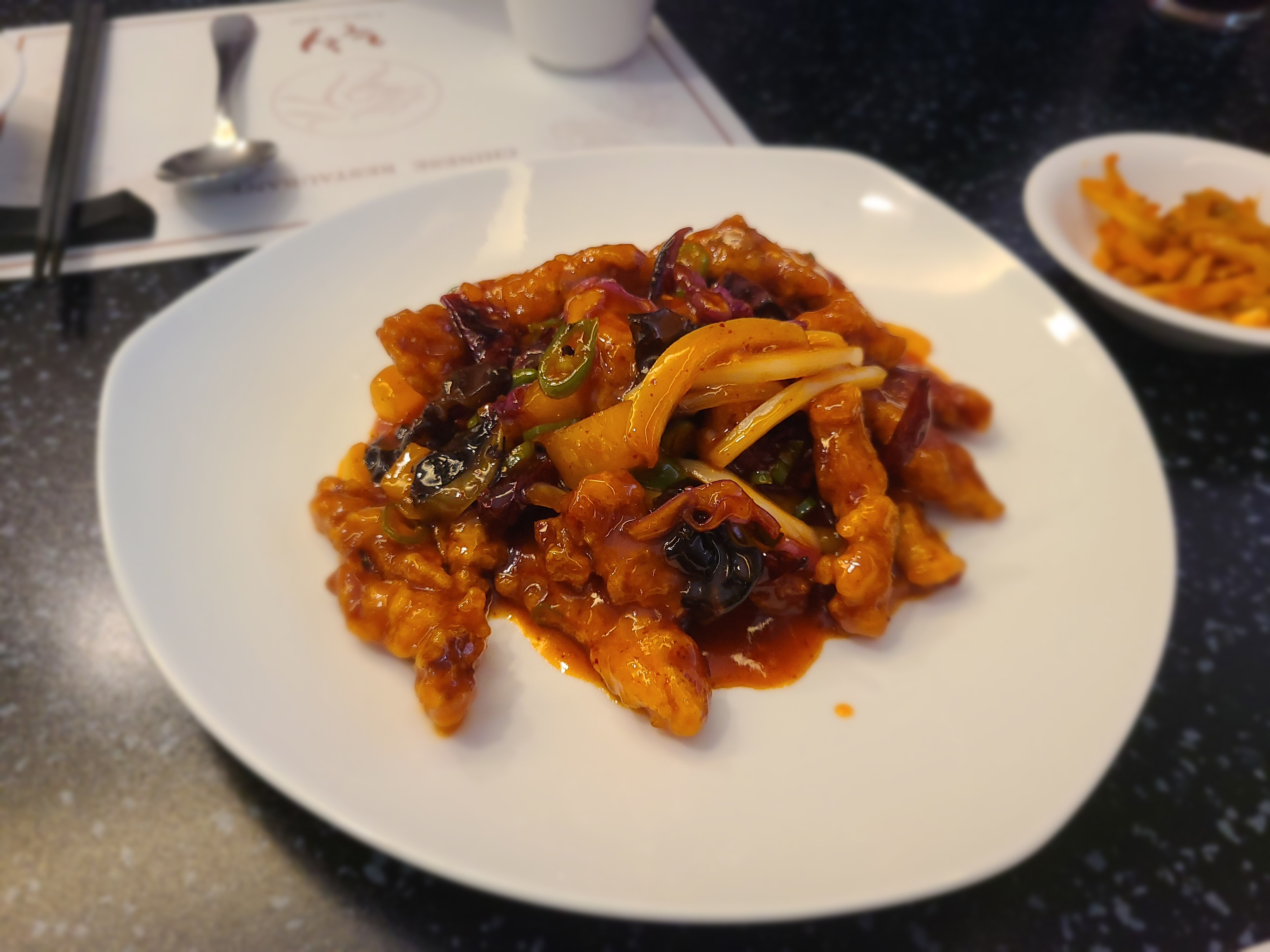 2명에서 탕수육과 짜장을 주문하면 알맞은 양인것 같았다. 지난번엔 일반 탕수육을 시켜보았었는데, 솔직히 사천탕수육보단 그냥 탕수육을 추천한다.