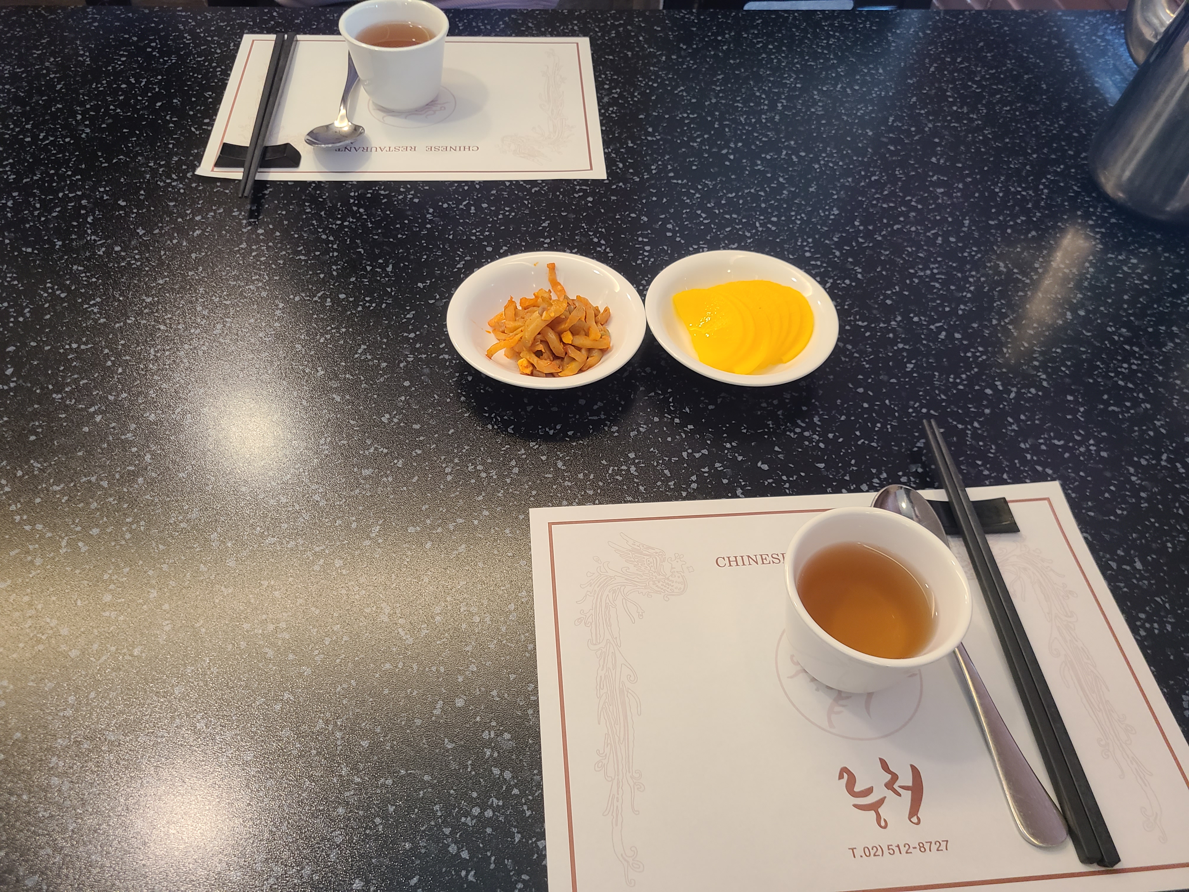 자리를 잡고 기다리면 기본 수저를 셋팅해주시고 메뉴를 고르면 된다.