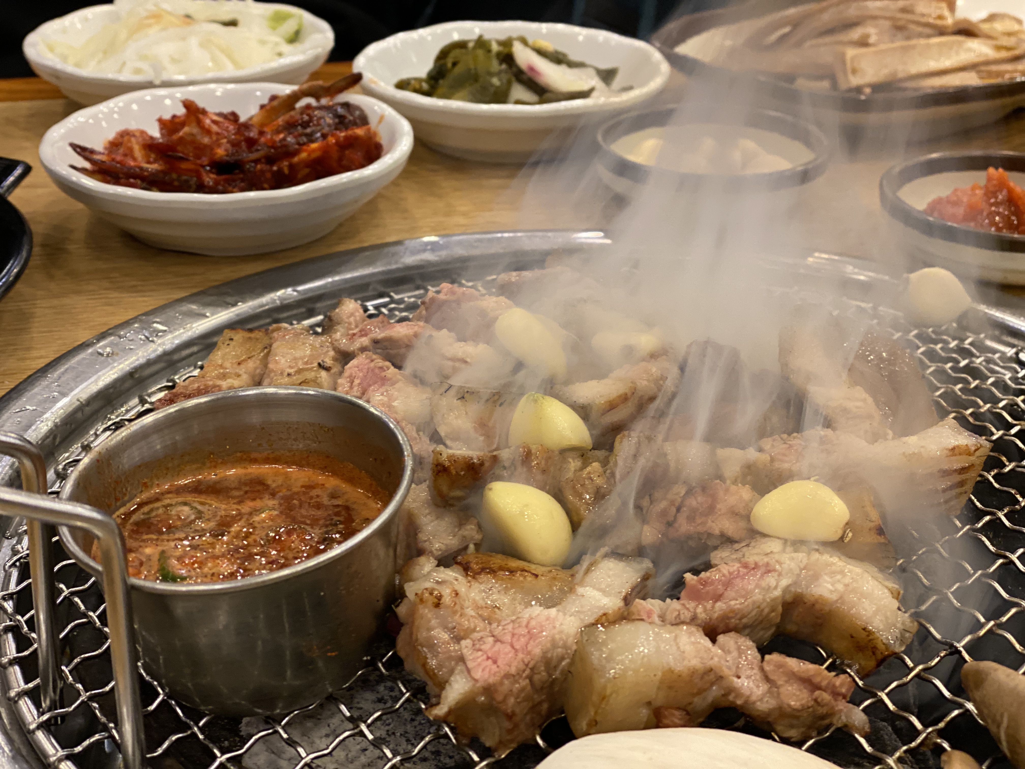 제주에 왔으니 흑돼지를 안먹을 수 없어서 유명한 늘봄흑돼지를 방문하였다. 예전에 제주도로 출장을 왔을때 방문했던적이 있었는데 아주 넓은 매장이 좋았고 무엇보다 지금 체력적으로 고기를 구워주는게 너무 좋아서 선택을 하게 되었다. 먼저 일이 있는 일행들은 가고 나를 포함해 3명에서 방문하였다. 이날 고기를 5인분과 밥등을 먹고 배가 터질뻔했다.